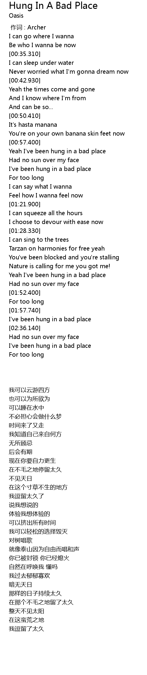 | [02:31.829] | I've been hung in a bad place |