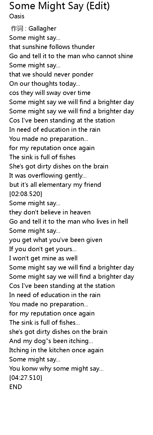 | 歌曲 | Some Might Say (Edit) |