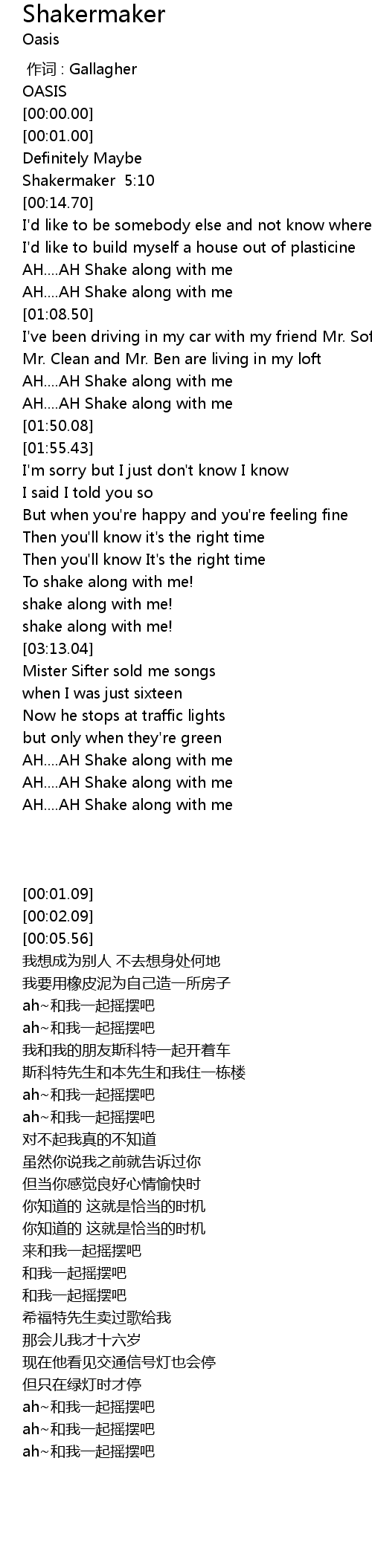 | [00:39.98] | I' d like to build myself a house out of plasticine |