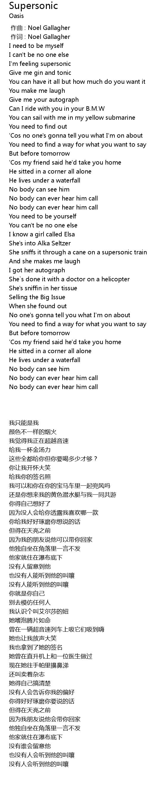 | [00:00.00] | 作曲 : Noel Gallagher |