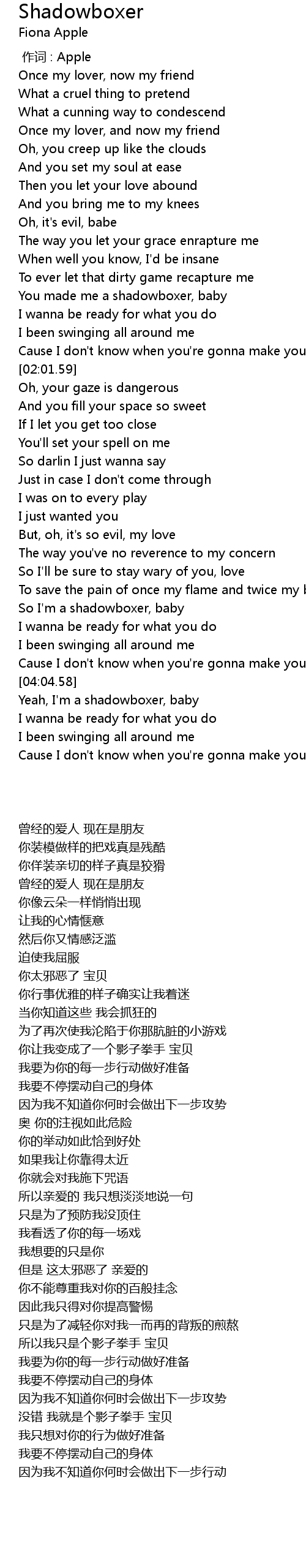 | [03:40.95] | So I'm a shadowboxer, baby |