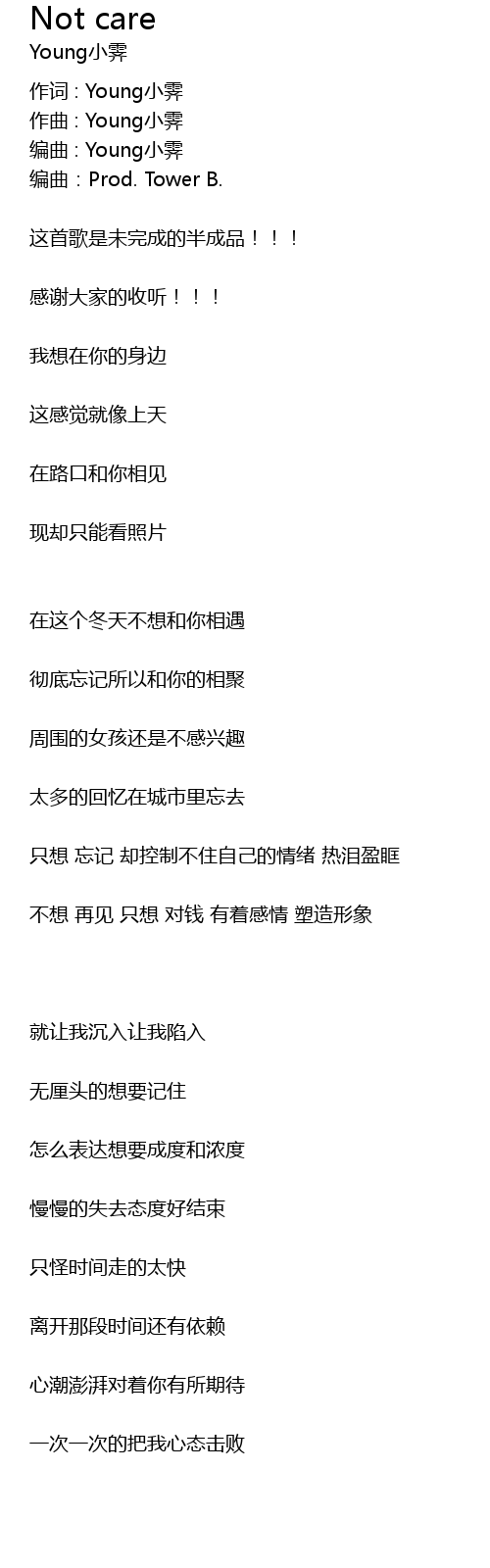 | 歌曲 | Not care |