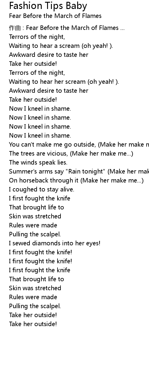 | zuò qǔ : Fear Before the March of Flames ... | |