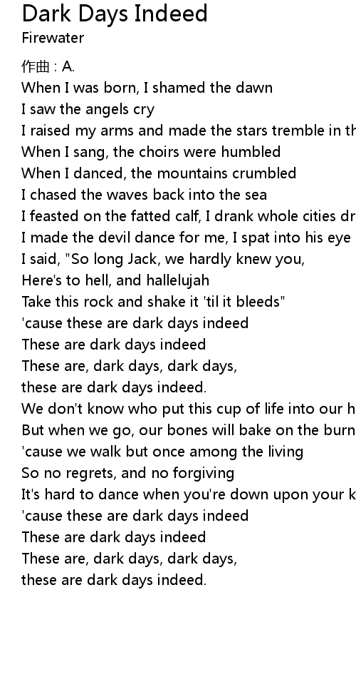 | 歌曲 | Dark Days Indeed |