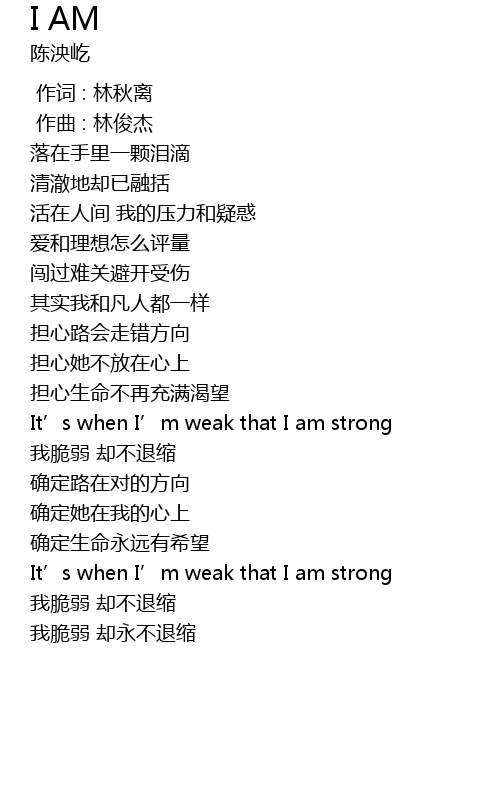 | [01:39.14] | It' s when I' m weak that I am strong |