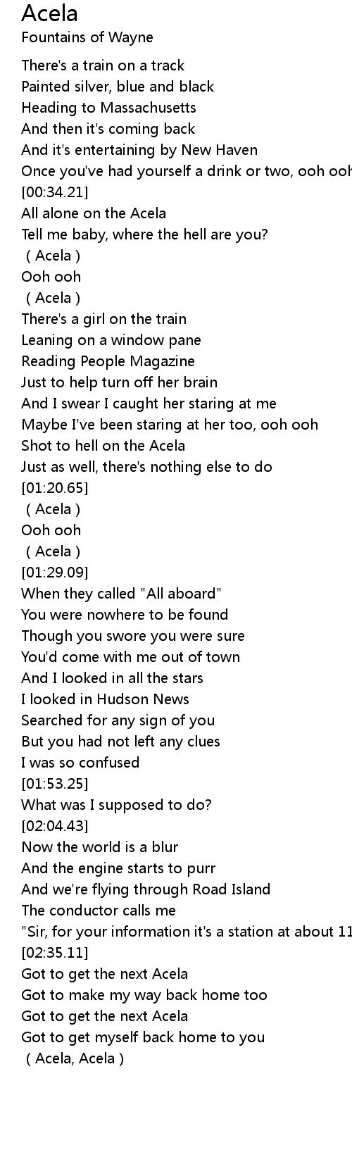 | [02:54.88] | Acela, Acela |