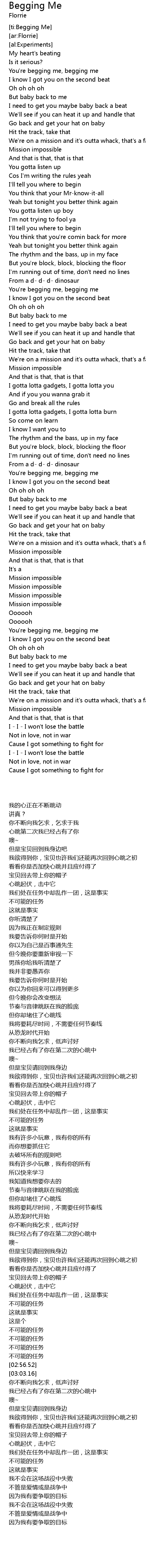歌曲 Begging Me