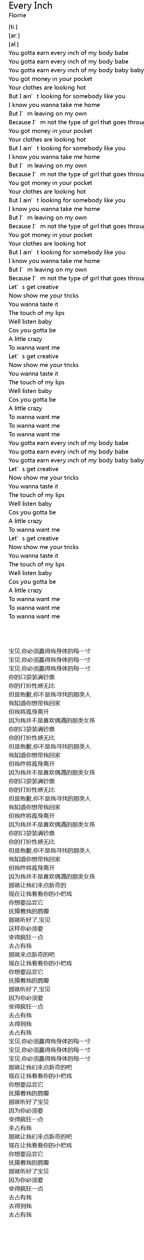 | [00:21.98] | You gotta earn every inch of my body baby baby baby baby |