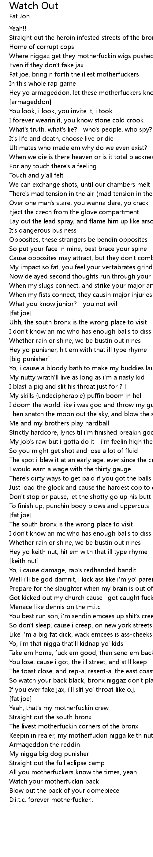 | Fat joe, bringin forth the illest motherfuckers | |