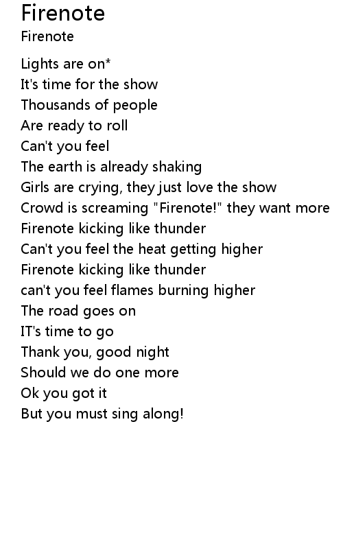 | Crowd is screaming "Firenote!" they want more | |