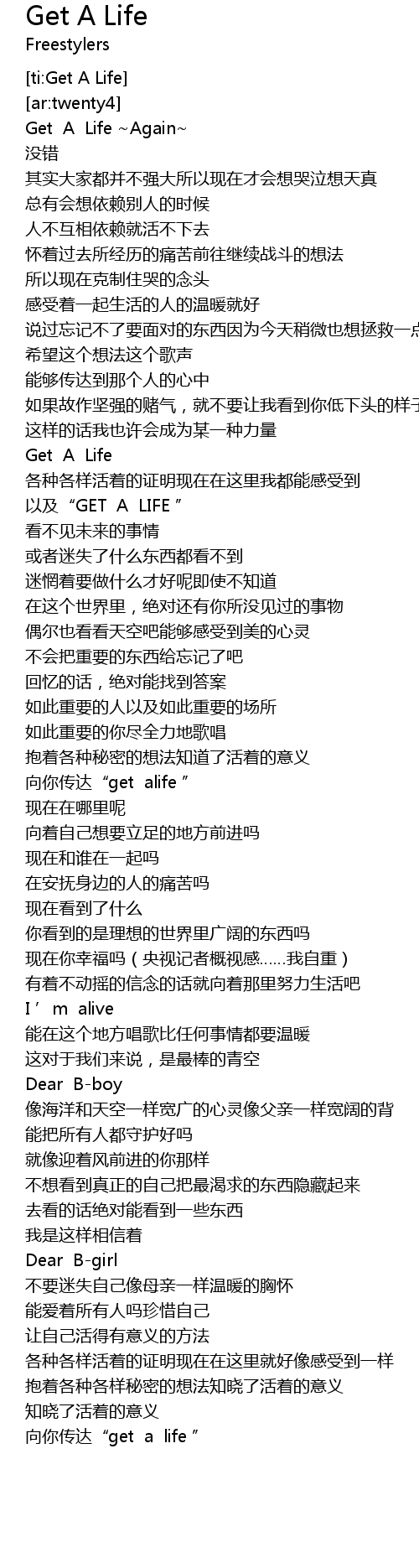| [01:23.267] | yǐ jí" GET A LIFE " |