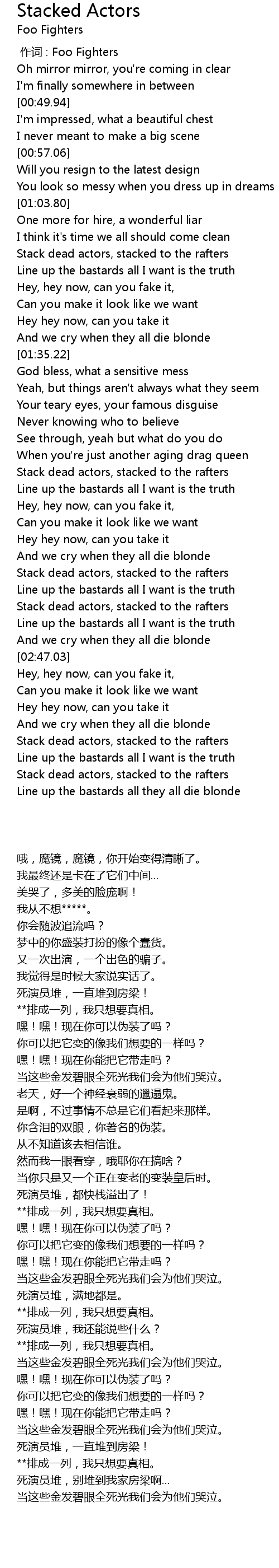| [02:37.46] | Stack dead actors, stacked to the rafters |