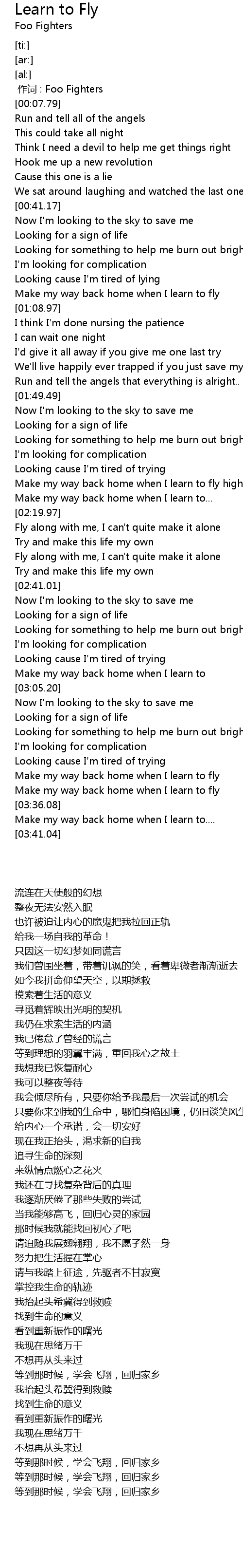 | [02:11.24] | Make my way back home when I learn to fly high |