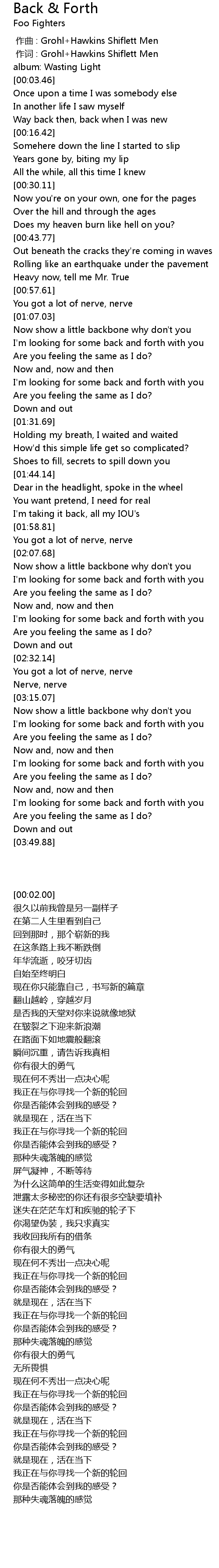 | [00:00.666] | 作词 : Grohl+Hawkins Shiflett Men |