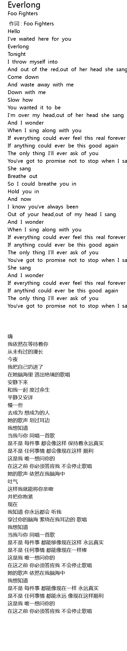| 歌曲 | Everlong |