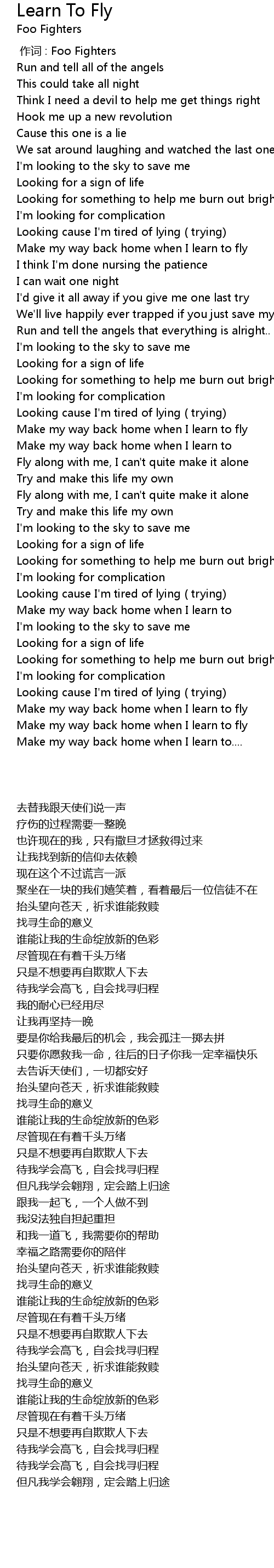 | [02:19.00] | Fly along with me, I can' t quite make it alone |
