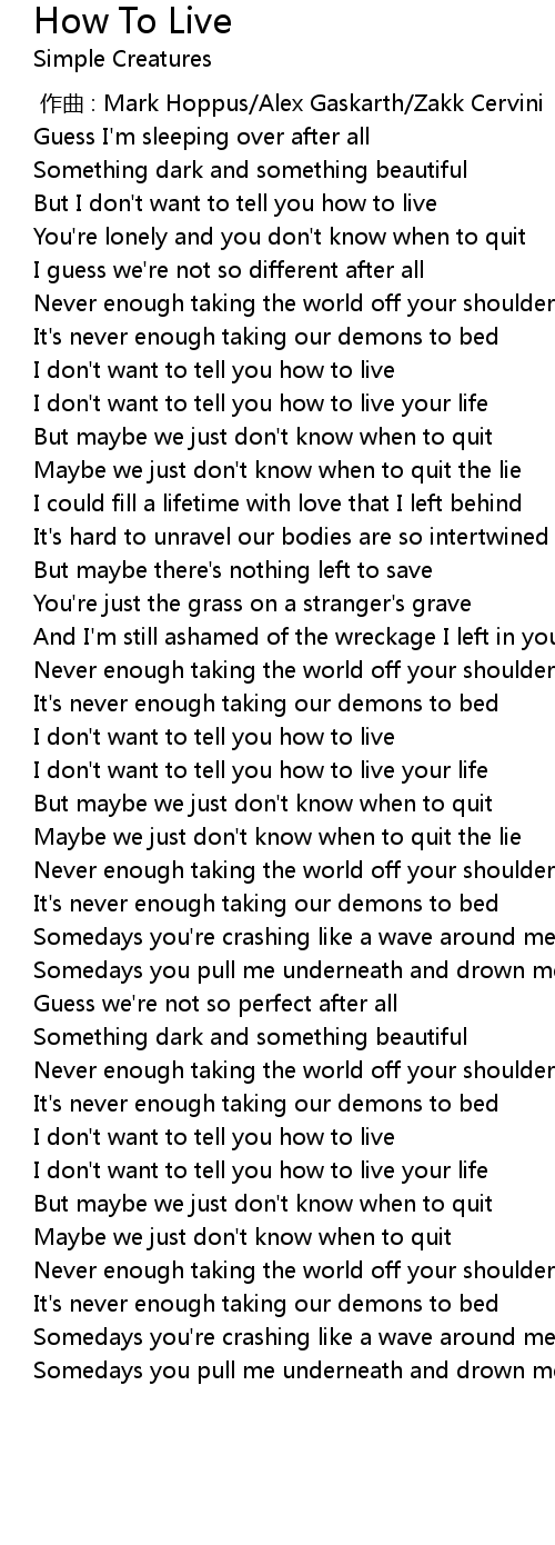 | [00:43.36] | I don' t want to tell you how to live your life |