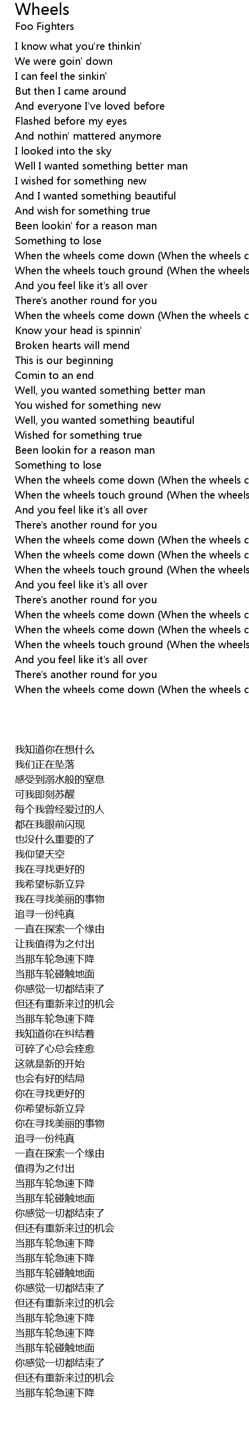 When the wheels come down (When the wheels come down) |