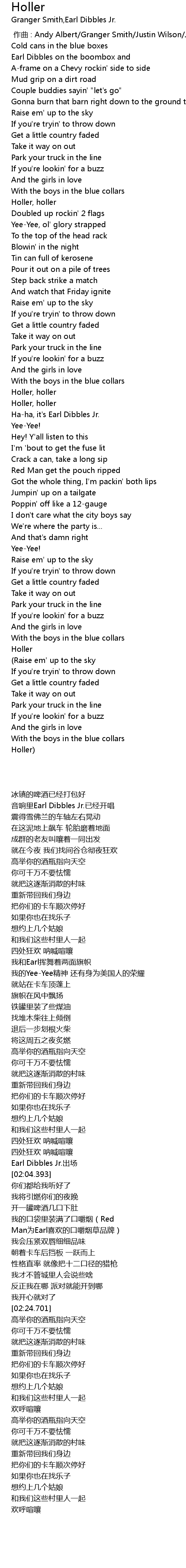 | [01:35.019] | Holler, holler |