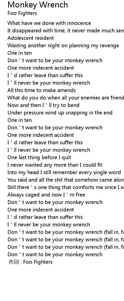 | 歌曲 | Monkey Wrench |