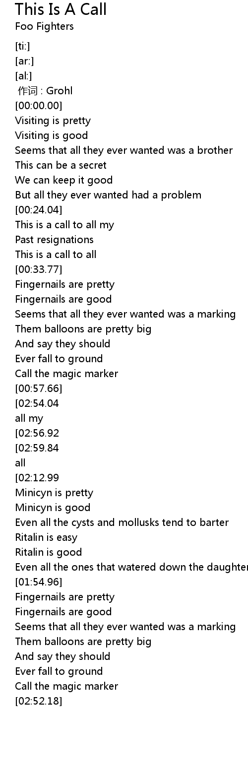 | [00:00.00] | 作词 : Grohl |