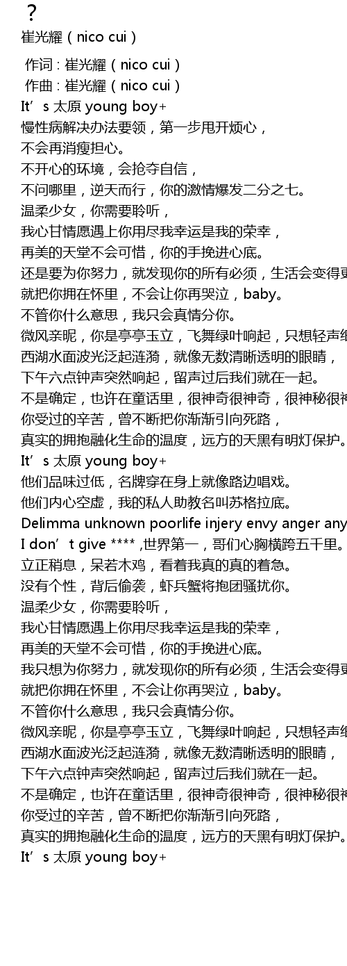 | [00:00.000] | 作词 : 崔光耀(nico cui) |