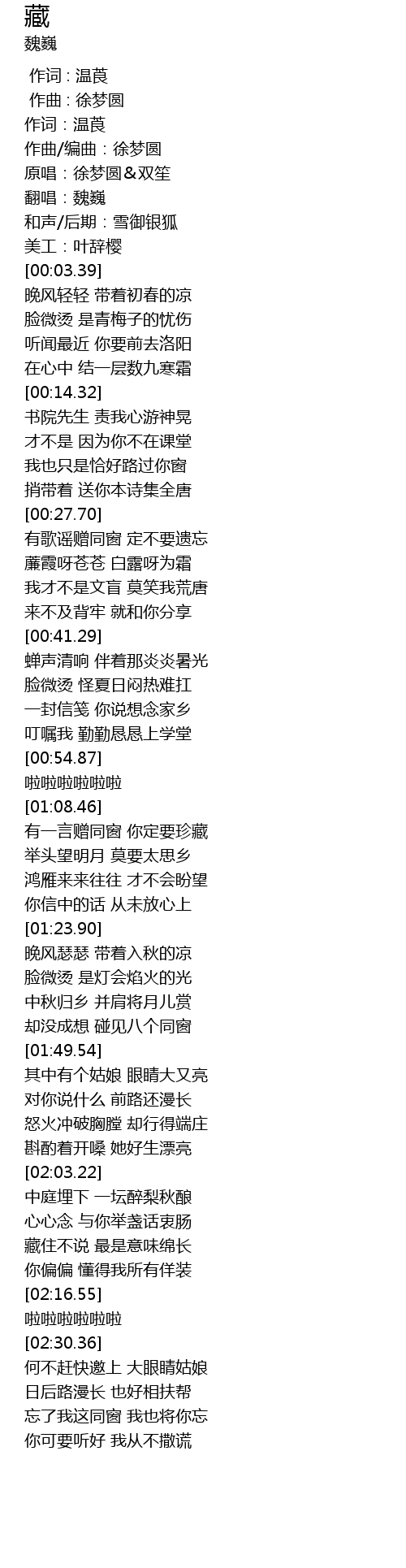 [00:02.53] 翻唱:魏巍