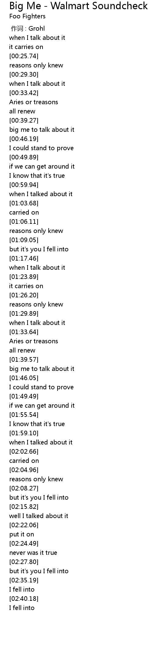 | [00:00.00] | 作词 : Grohl |