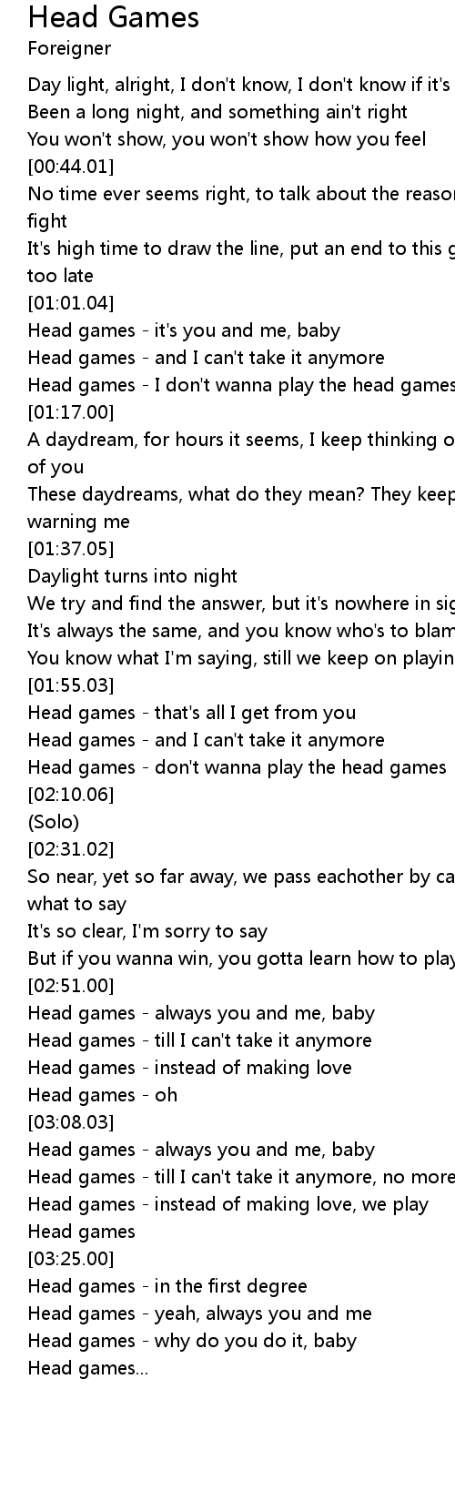 Head games - till I can't take it anymore, no more |