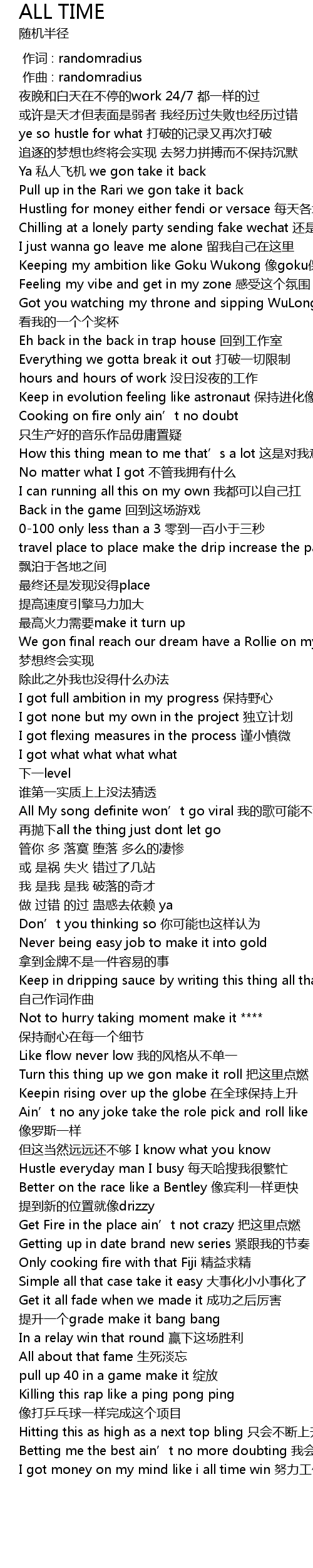 | [00:34.412] | Hustling for money either fendi or versace měi tiān gè dì bēn bō |
