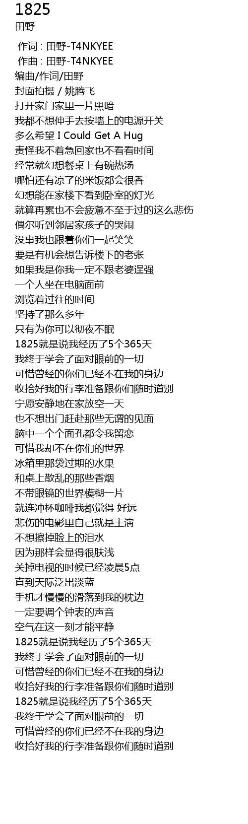 | [00:01.000] | 作曲 : 田野-T4NKYEE |