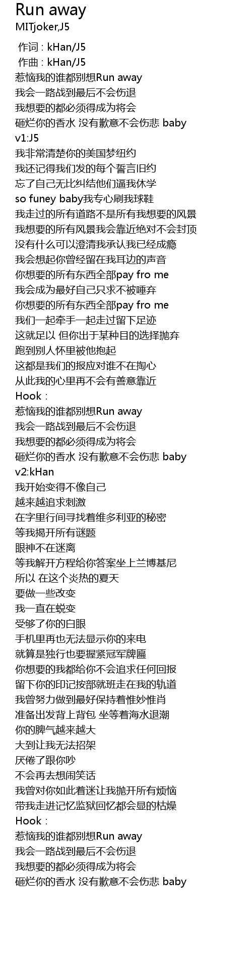 | [00:22.448] | rě nǎo wǒ de shuí dōu bié xiǎng Run away |