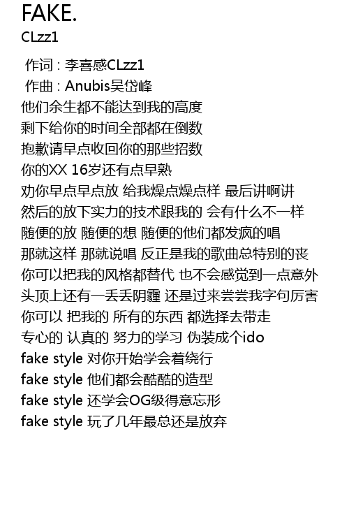 | [01:03.695] | fake style hai xue hui OG ji de yi wang xing |