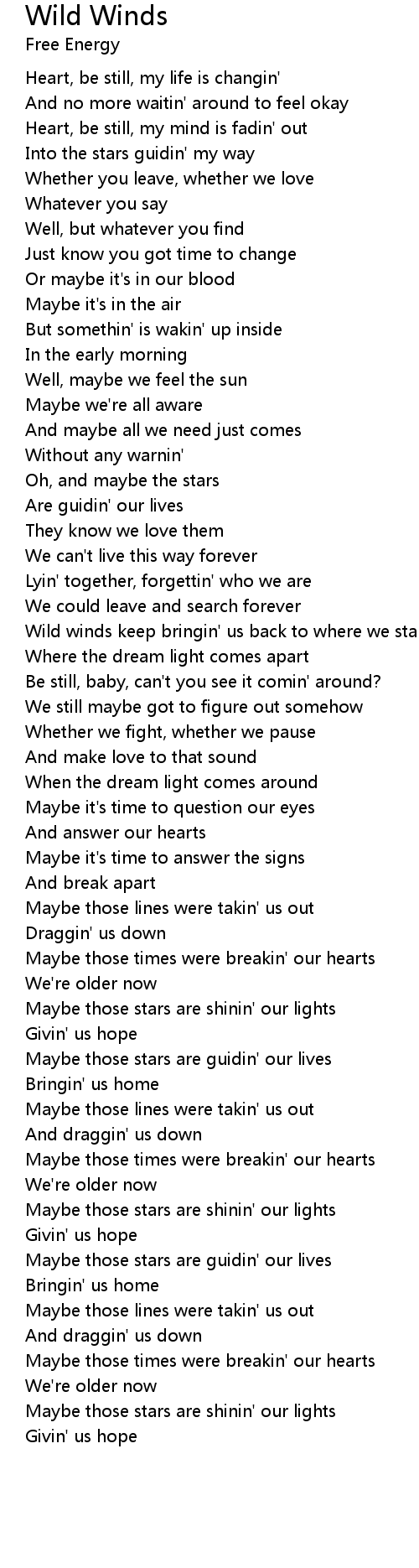 Wild winds keep bringin' us back to where we start |