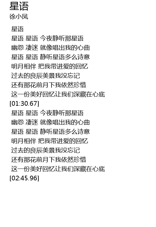 | [00:39.03] | 星语 星语 静听星语多么诗意 |