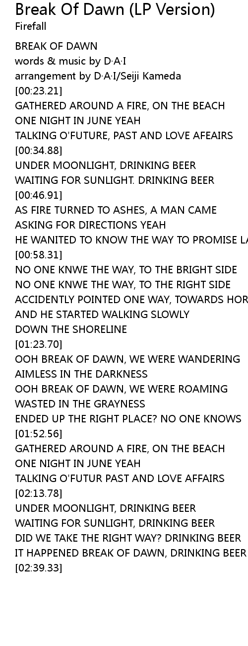 | [00:06.69] | BREAK OF DAWN |