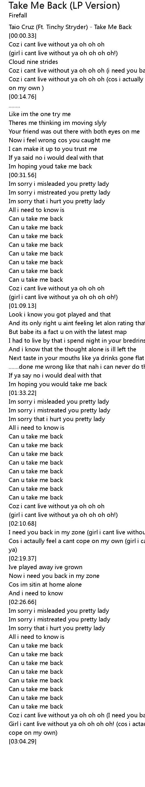 Taio Cruz (Ft. Tinchy Stryder) - Take Me Back |