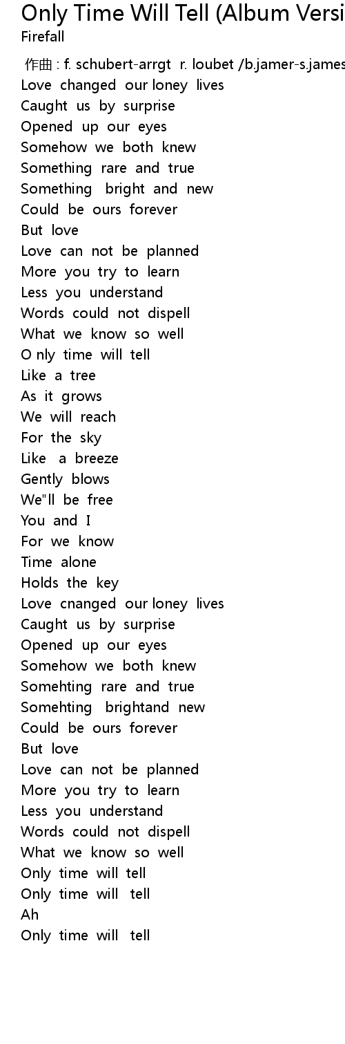 | [03:27.71] | Only time will tell |