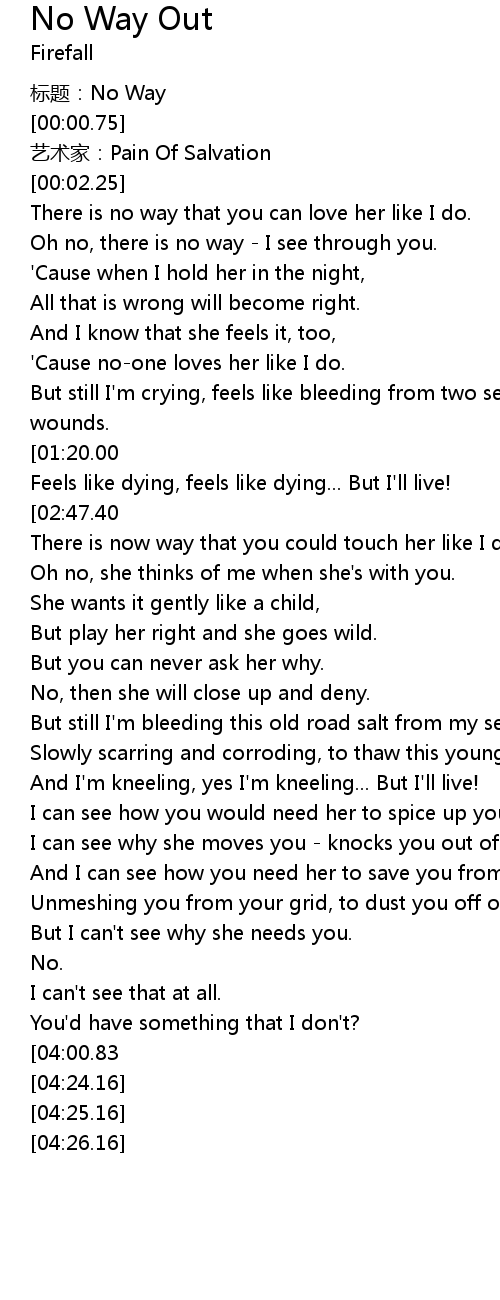 | [00:00.00] | biāo tí: No Way |