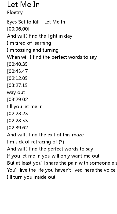 | [00:02.00] | Eyes Set to Kill - Let Me In |