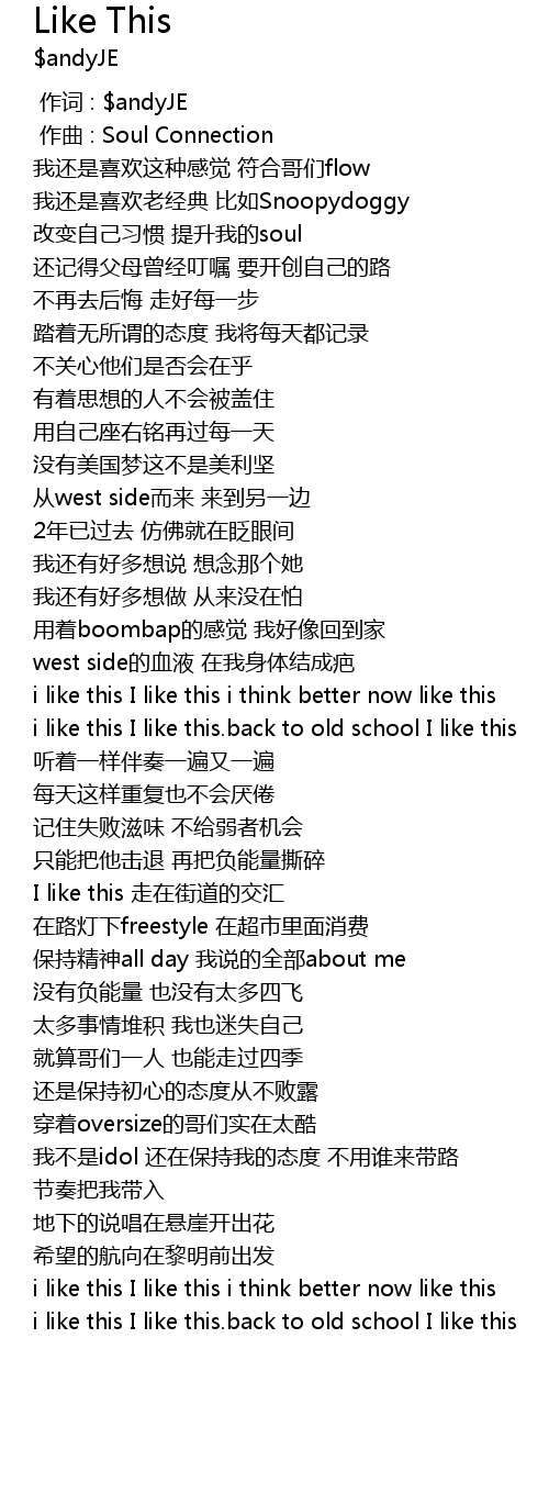 | [00:00.000] | 作词 : $andyJE |