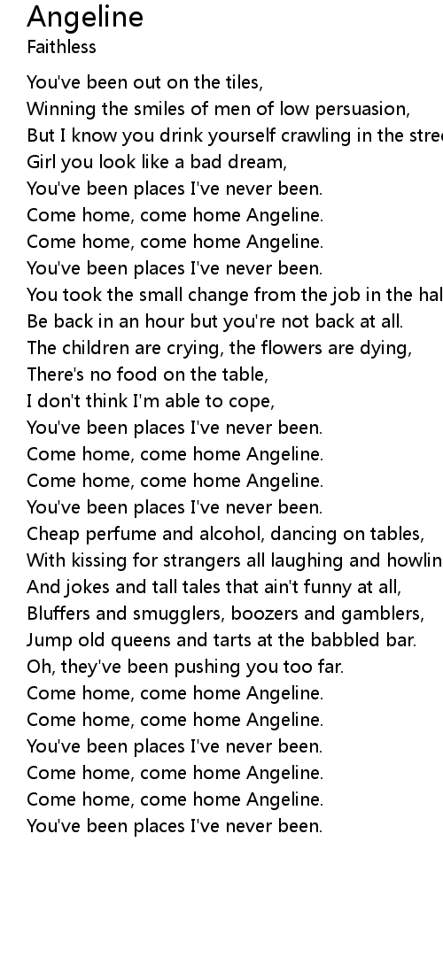 Come home, come home Angeline. |