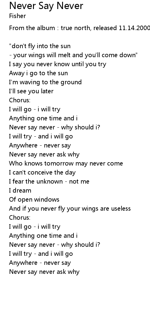 | Never say never ask why | |
