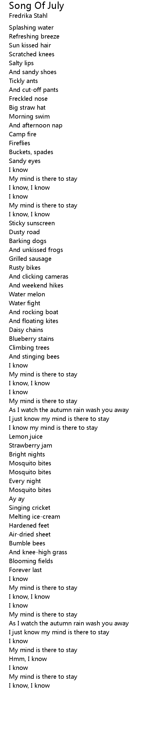 I just know my mind is there to stay |