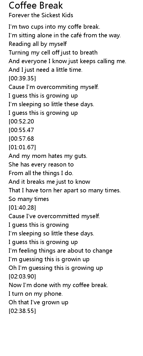| [02:24.85] | Now I' m done with my coffee break. |
