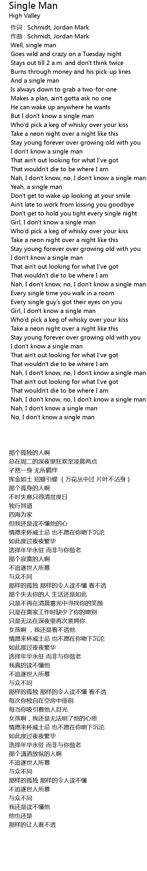 | [00:59.238] | Nah, I don' t know, no, I don' t know a single man |