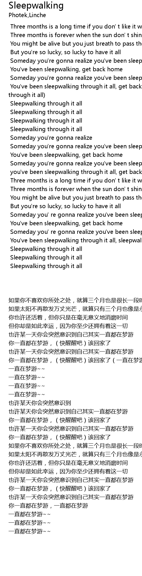 You've been sleepwalking through it all, get back home (sleepwalking through it all) |