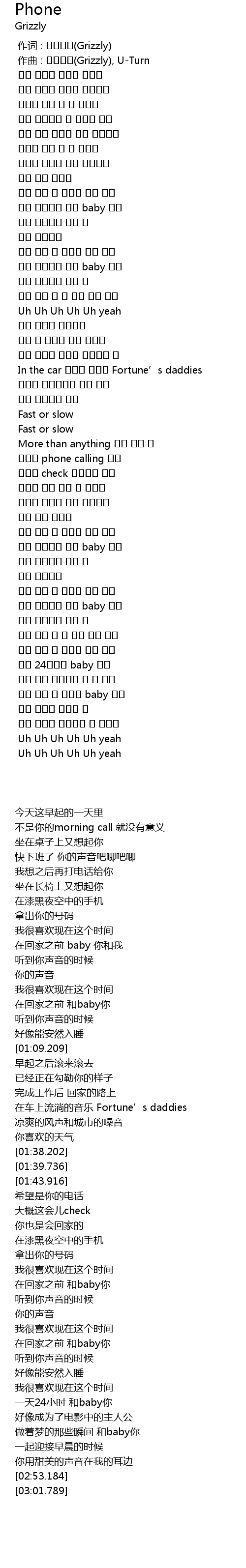 | [00:01.000] | zuò qǔ : Grizzly, UTurn |