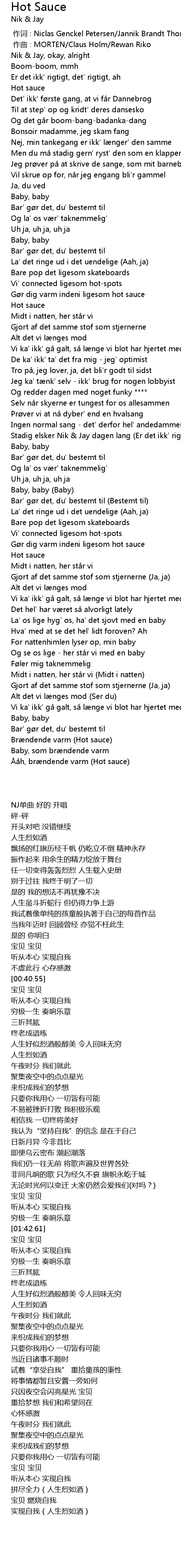 | [01:33.67] | Stadig elsker Nik Jay dagen lang Er det ikk' rigtigt, det' rigtigt |