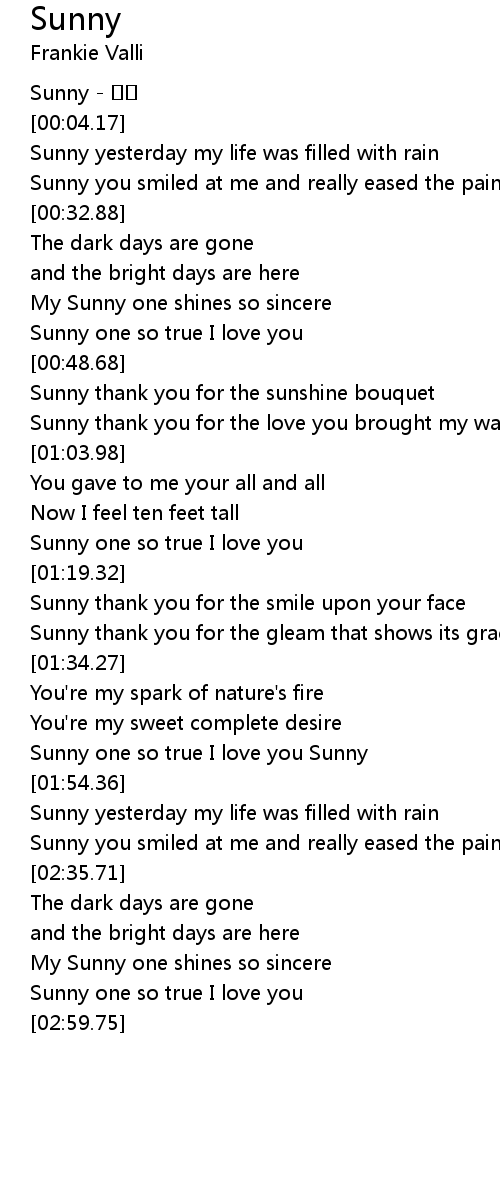| [02:28.99] | Sunny you smiled at me and really eased the pain |